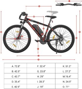 Avec des roues de 27,5 pouces, le vélo électrique peut négocier les obstacles avec facilité et stabilité. Les pneus en caoutchouc pneumatiques de 2,35 pouces offrent plus de traction pour une conduite douce et confortable, même sur un terrain accidenté. De plus, la surface du pneu à crampons réduit considérablement l’impact causé par les bosses de la route, ce qui rend votre conduite encore plus agréable.
