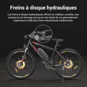 La suspension hydraulique est plus réactive que les autres systèmes de suspension, Et avec la conception de verrouillage, vous pouvez verrouiller la suspension pour une conduite rapide sur des routes plates et la déverrouiller pour une croisière confortable sur des chemins cahoteux. Les freins à disque hydrauliques offrent un meilleur contrôle et un effort de freinage accru.