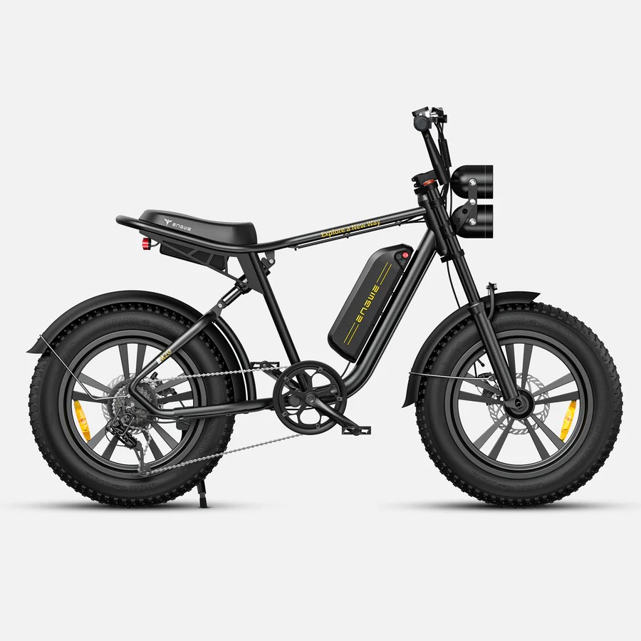 Vélo électrique est équipé de pneus neige de 20 pouces. Le pneu neige plus large de ce vélo électrique reste souple et adhère mieux aux températures extrêmement basses, offrant ainsi une meilleure traction. Par rapport aux pneus ordinaires, ils peuvent empêcher efficacement le véhicule de la vélo électrique pliable de tourner sur le côté, réduire la distance de freinage et être plus résistants au dérapage. ENGWE vélo électrique avec pneus neige vous permet d’aller où vous voulez.